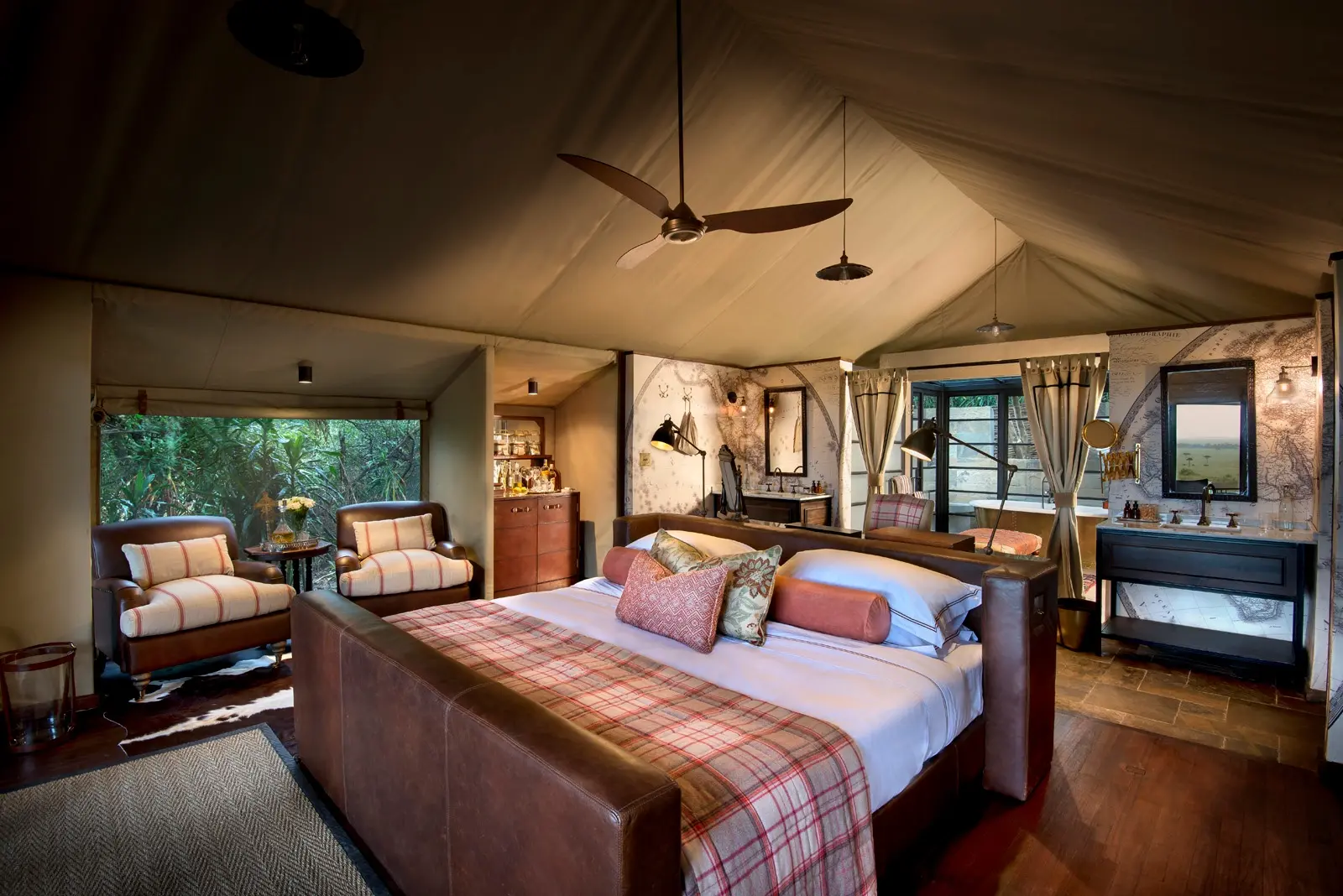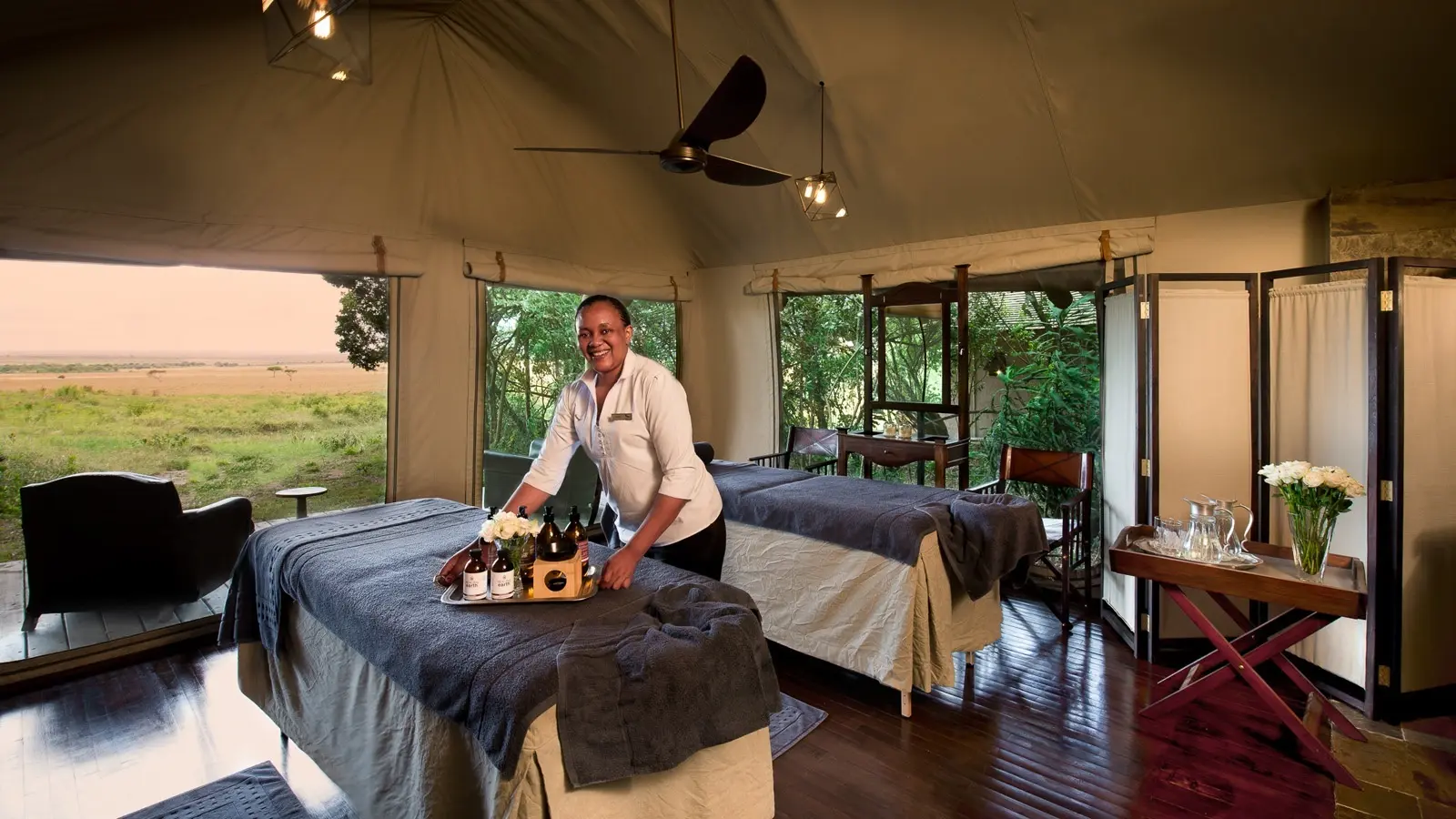 - Camp luxueux au cœur d’une concession privée du Masai Mara.