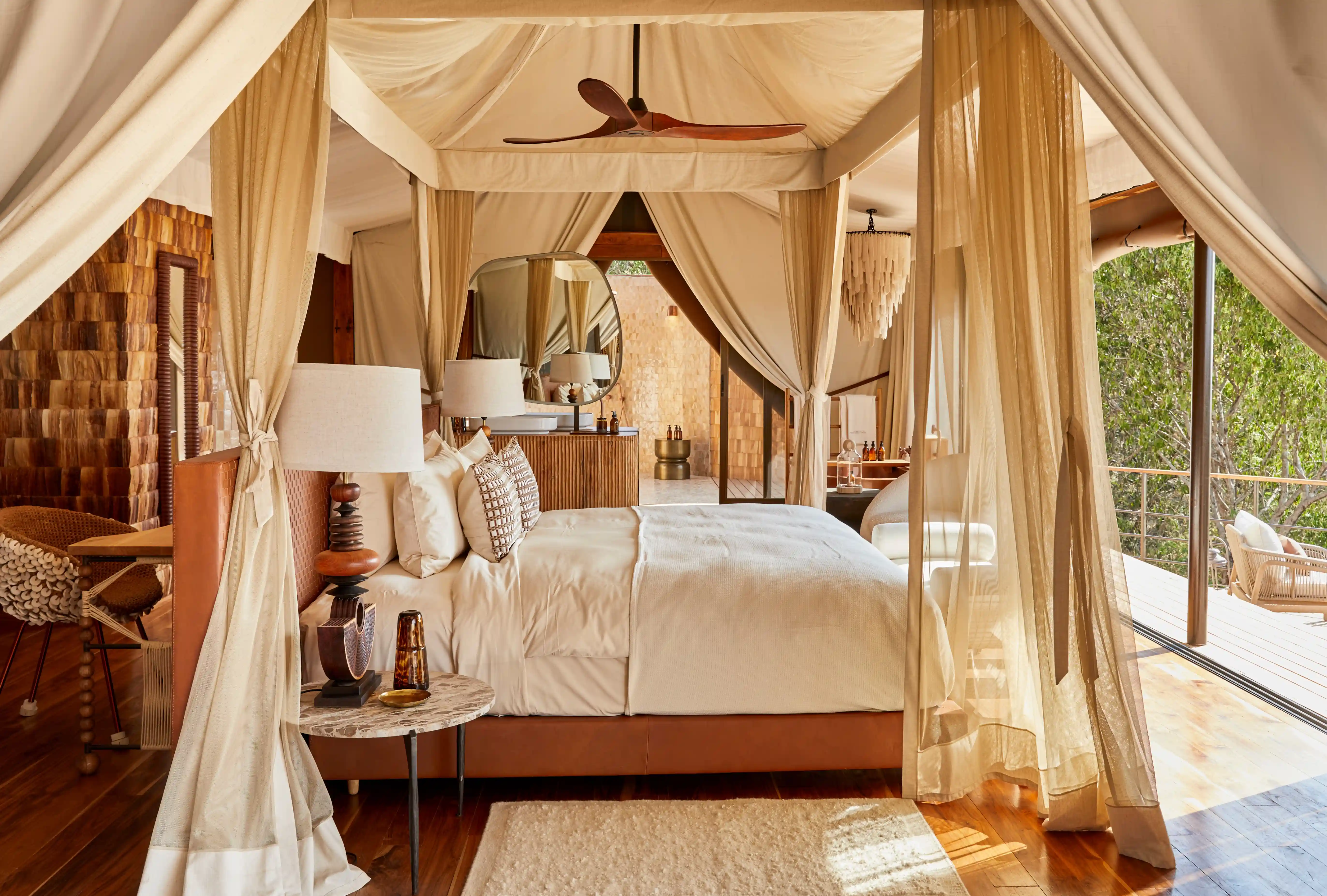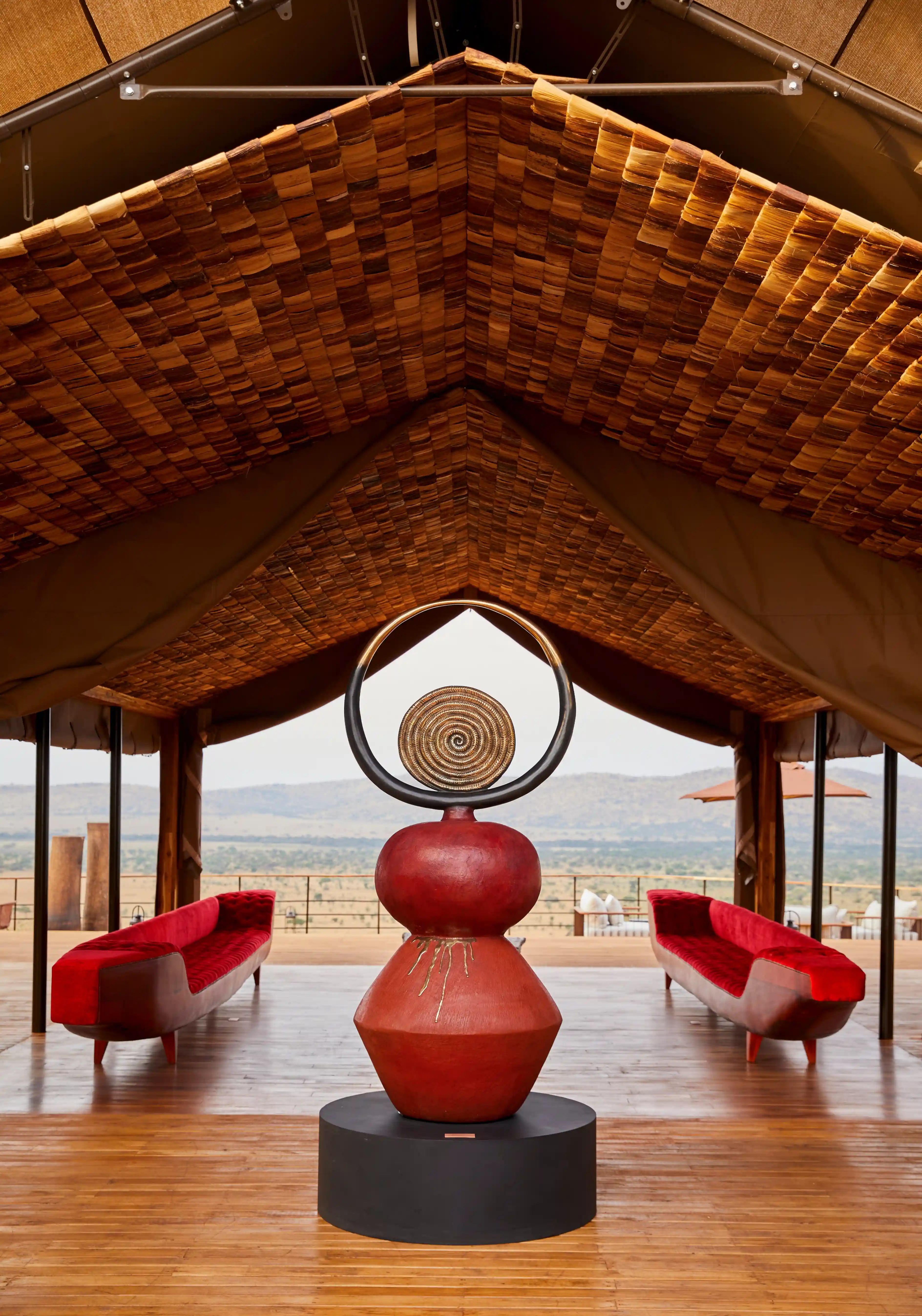 Perché au sommet d’une colline isolée à l’entrée ouest du Serengeti, le Laba Grumeti Art Lodge est une adresse à part. Imaginé comme une œuvre vivante, ce lodge unique marie le meilleur de l’art africain contemporain avec la magie du bush tanzanien. Inspirée par l’univers de l’artiste sud-africaine Zizipho Poswa et enrichie d’une collection de 46 œuvres d’artistes africains majeurs, l’esthétique du lodge réinvente le safari en conservant son âme authentique. Tout y est pensé pour offrir une expérience complète, entre hébergement sous tente haut de gamme, engagement environnemental fort et vue imprenable sur le Serengeti.