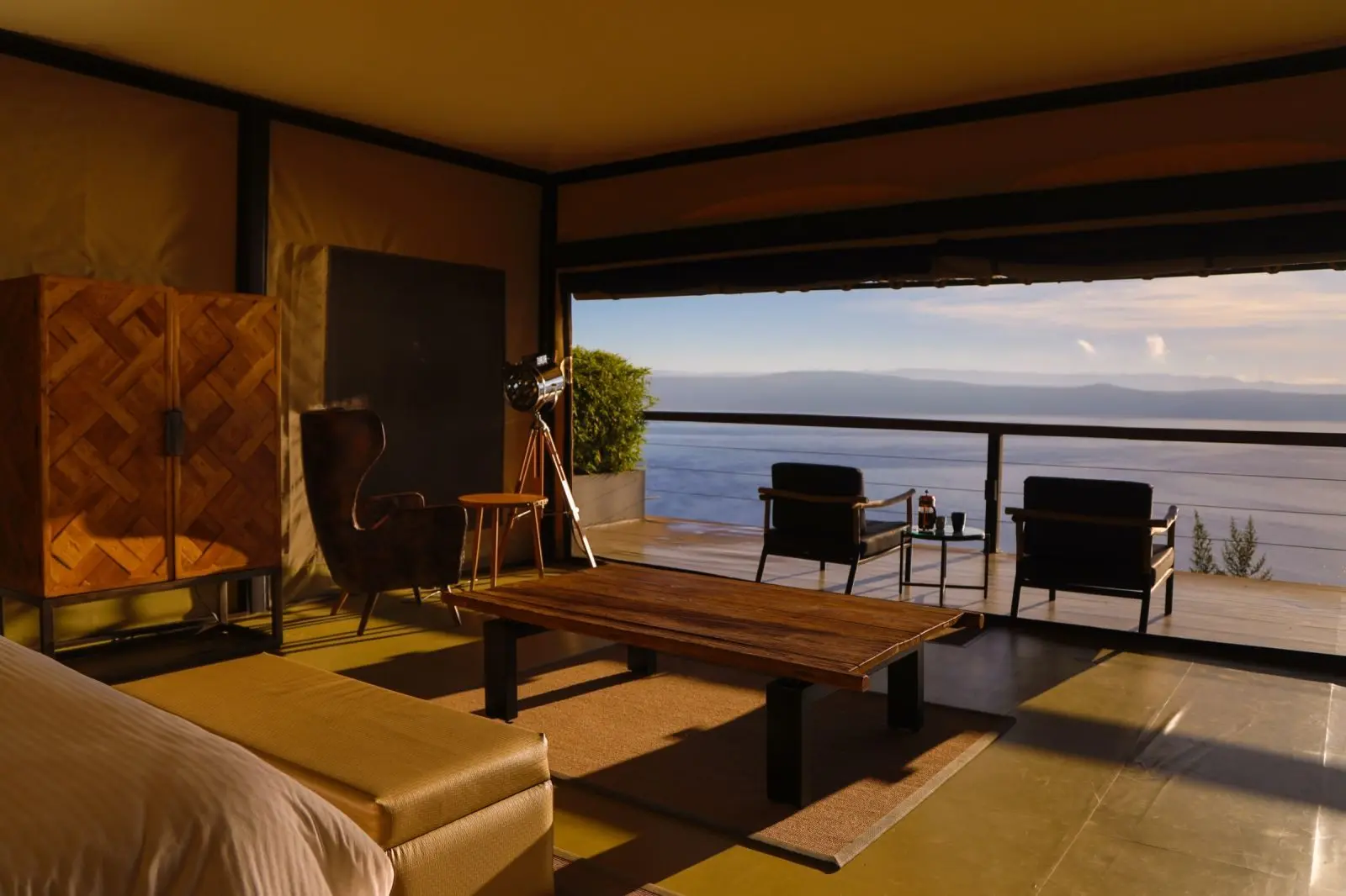 Depuis Laikipia, la route s'éloigne progressivement de la savane pour vous conduire vers la région des lacs, un trajet d'environ 4h30 qui marque la transition entre deux paysages. Une pause pique-nique vous permet de savourer un moment de détente en pleine nature, avant de poursuivre votre route. À votre arrivée au camp, l'équipe vous accueille chaleureusement et vous installe dans votre chambre. En fin d'après-midi, vous profitez d'un apéritif unique : un verre à la main, face à la savane, vous contemplez le spectacle du soleil qui s'efface à l'horizon, colorant le ciel de teintes flamboyantes. La soirée se poursuit autour d'un dîner savoureux servi au camp, clôturant cette journée de transition en beauté.