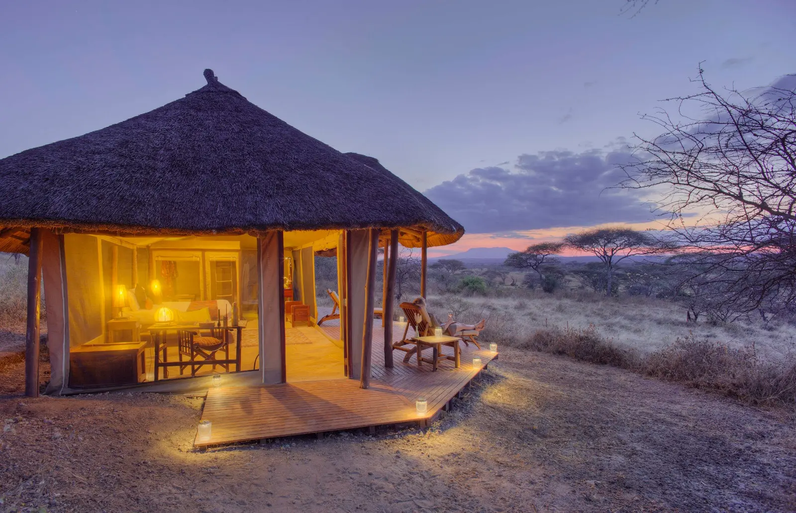 En soirée, vous quittez la France à bord d’un vol de nuit à destination de la Tanzanie, point de départ de votre voyage. Après une nuit passée à bord, vous atterrissez au petit matin à Arusha et son aéroport international du Kilimandjaro. À votre arrivée, un service VIP facilite l’ensemble de vos formalités. Votre chauffeur-guide francophone vous accueille ensuite pour débuter votre aventure sans tarder vers le parc national de Tarangire, situé à environ 4h de route. Au fil du trajet, les paysages du nord tanzanien se dévoilent progressivement : villages, terres agricoles et vastes étendues de savane. À l'entrée dans le parc, les premières pistes de safari offrent déjà l’occasion d’observer la faune dont les célèbres grands troupeaux d’éléphants. À l'heure du déjeuner, une pause pique-nique en pleine nature vous permet de faire une halte pour reprendre des forces. En fin de journée, arrivée au lodge et installation dans votre chambre. La soirée se conclut autour d’un dîner savoureux au cœur de la savane.